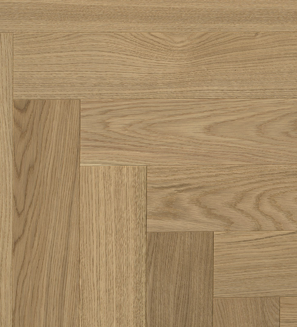 Parador engineered wood flooring Oak cream wide plank from the Trendtime 3 product line stands for particularly high-quality and pleasant living. Available as a strip in the format 570 x 95 x 10.5 mm, this refined engineered wood flooring impresses by using high-quality oak wood. Flooring with the traditional herringbone installation pattern is currently one of the most popular trends in flooring design. The top layer made of solid wood in the Living assortment has a matt lacquer finish and is characterised by a vibrant look that underlines the earthy character of the wood. The flooring from the Trendtime 3 product line has a 4-sided mini bevel, which discreetly interrupts the appearance of the installed planks, thus providing a traditional engineered wood flooring experience. Thanks to the innovative Allround-Click system, Parador engineered wood flooring from the Trendtime 3 product line is easy to install – even on underfloor heating systems. Right and left strips are not required. The engineered wood flooring remains dimensionally stable and gives a pleasant walking sensation that is warm underfoot. The height of the top layer is approx. 2.5 mm. An all-round lamella and top layer impregnation ensures reliable swelling protection and a lot of pleasure from this engineered wood flooring, for which wood from sustainably managed sources is predominantly used. The manufacturer's guarantee on this floor is 25 years.
