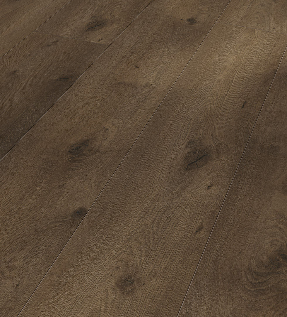 Parador laminate flooring Oak Everglade antique chateau plank from the Trendtime 6 product line is a laminate flooring that has been specially developed for lovers of chateau planks. The planks in the unusual format of 2200 x 243 x 9 mm give every living room ambience a special elegance. The all-round jointed long and end edges on the planks underline the impression of real wooden flooring. The natural matt texture gives the impression of naturally treated wood. The attractive laminate flooring from the Trendtime 6 product line is extremely durable and microscratch-resistant. It has increased antistatic properties and, thanks to the use of a special Aqua-Proof core board, is also suitable for installing in wet rooms such as kitchens or bathrooms. This laminate flooring is also protected against standing water for up to 48 hours thanks to the use of a technically improved bevel lacquer. The intelligent click system with the SafeLock® PRO click connection enables an easy and custom-fit installation. The all-round edge impregnation also provides reliable swelling protection. Parador laminate flooring Trendtime 6 is suitable for installation on underfloor heating systems. Due to the outstanding quality of this flooring, there is a lifetime manufacturer's guarantee for private use.