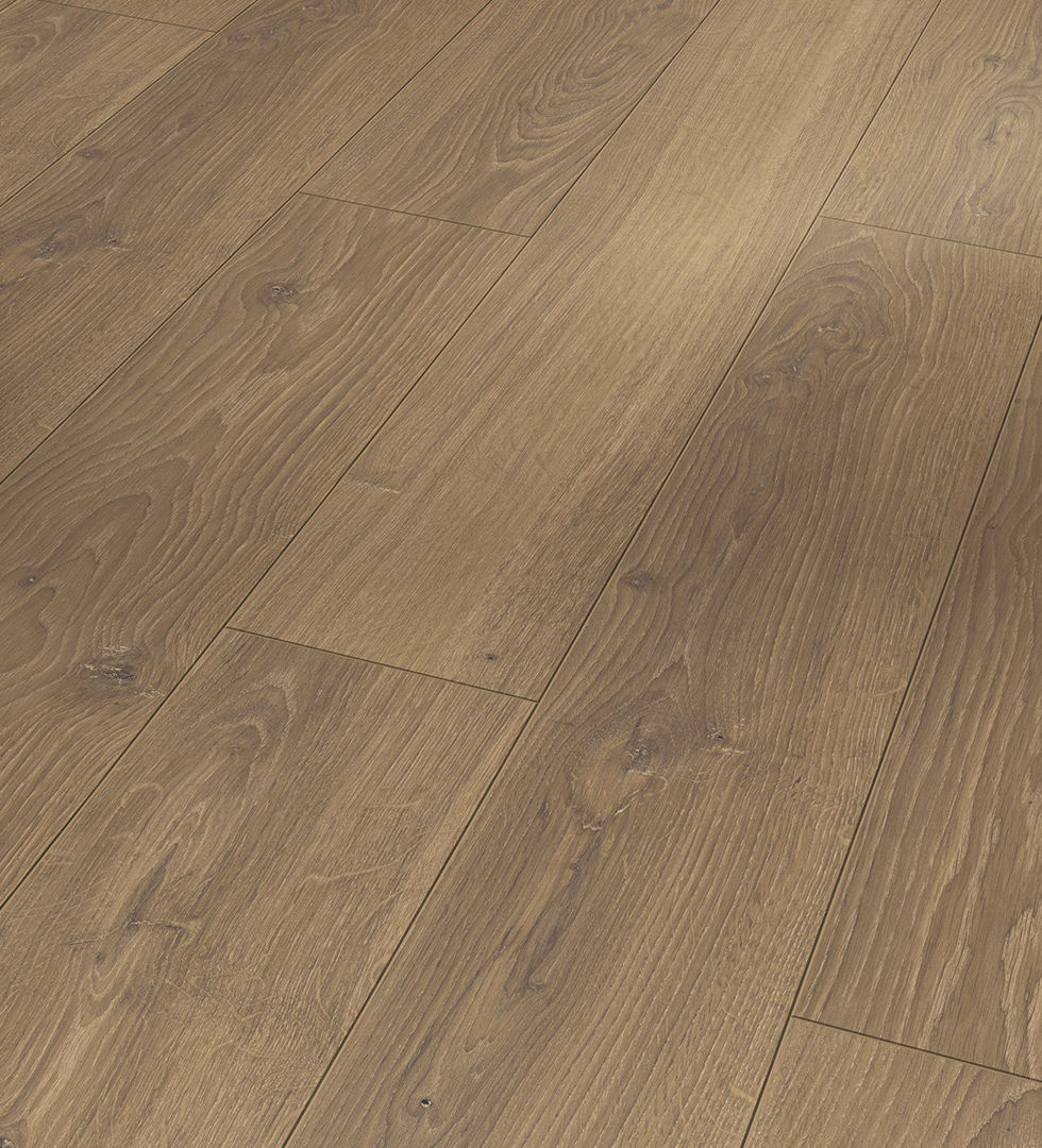 Parador laminate flooring Oak Studioline honey wide plank from the Classic 1050 product line awaits with an individual product design and has a natural matt texture. Due to its matt appearance, this texture gives the impression of untreated wood. This flooring is available as a wide plank in the format 1285 x 194 x 8 mm. It impresses by its tremendous durability and the special resistance to scratches. The design with an all-round groove emphasises the individual planks and contributes to the laminate flooring being reminiscent of a real wood floor. Laminate floors from Parador's Classic 1050 product line are low on emissions and allergens, extremely easy to care for and promote healthy living. They are suitable for installation on top of underfloor heating. Thanks to the patented click mechanism with the SafeLock® PRO click connection and the low plank height of only 8 mm, the flooring can be installed easily in a custom-fit manner. A special Aqua-Proof core board even allows the flooring to be used in wet rooms. For private use, these floors are covered by a lifetime (lifetime of the person entitled to the guarantee) manufacturer's guarantee (according to Parador guarantee terms). The floors of the Classic 1050 product line are also connection stable and have excellent edge swell protection.